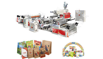 擠出涂布復(fù)合機(jī)、分切復(fù)卷機(jī)、切紙機(jī)和切紙機(jī),廣泛應(yīng)用于紙張(紙杯、紙袋、米包紙涂層、無菌包裝)、織物、箔、無紡布、PP編織等材料。